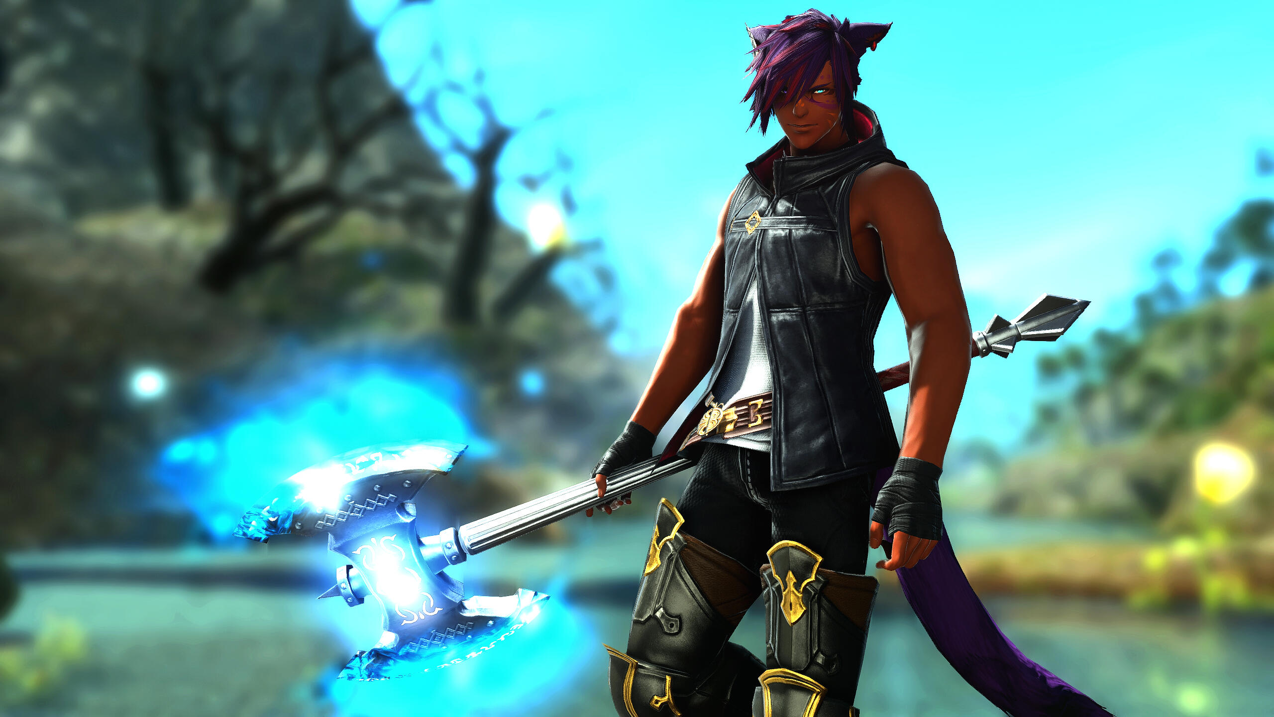 Born in The Black Shroud and spending much of his youth under the Twelveswood's boughs, Zhyk left his clan upon reaching early adolescence and made for Gridania. A chance encounter with a retired Ishgardian knight, Lucent Devereaux, and his Au Ra apprentice, Temur Iriq, introduced Zhyk to adventuring and mercenary work — a path he would make his life's calling. Over half a decade later, an expedition into Dzemael Darkhold went awry, splintering the newfound family he had. He remains a sellsword years later, though solitary in his work, accompanied only by the ethereal sapphire flames at his fingertips.